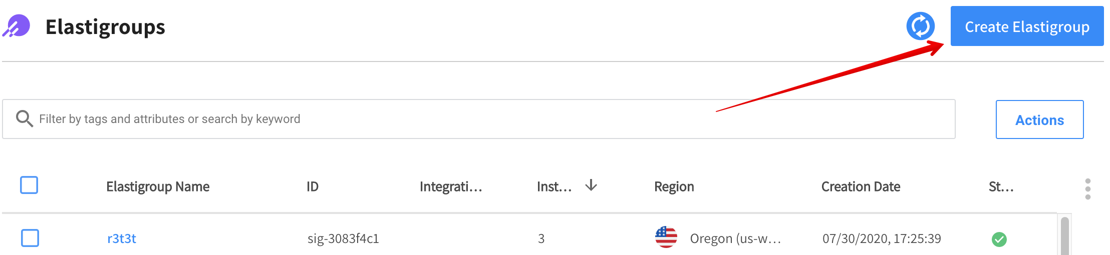 • Region: Click on the AWS region for the Elastigroup.