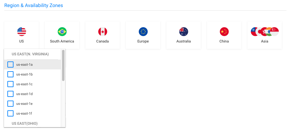 Select the region and availability zones.